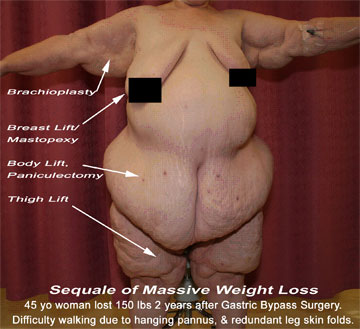 Having successfully battled obesity, these people are now faced with a new challenge- excessive and hanging skin folds of the abdomen, arms, thighs, breasts, and face. Thinking that once they lose their massive weight they will be attractive again, men and women are disappointed and frustrated with unsightly folds of skin which cover their groin like an apron, hang off their arms like bat wings, and wiggles from their legs when trying to jog. It also creates a problem for personal hygiene, as well as to find cloths that fit.