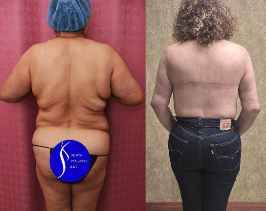 I believe that a body lift helps to remove the excess horizontal skin as well as the back rolls via a bikini line circumferential scar. This eliminates the need for a vertical scar.